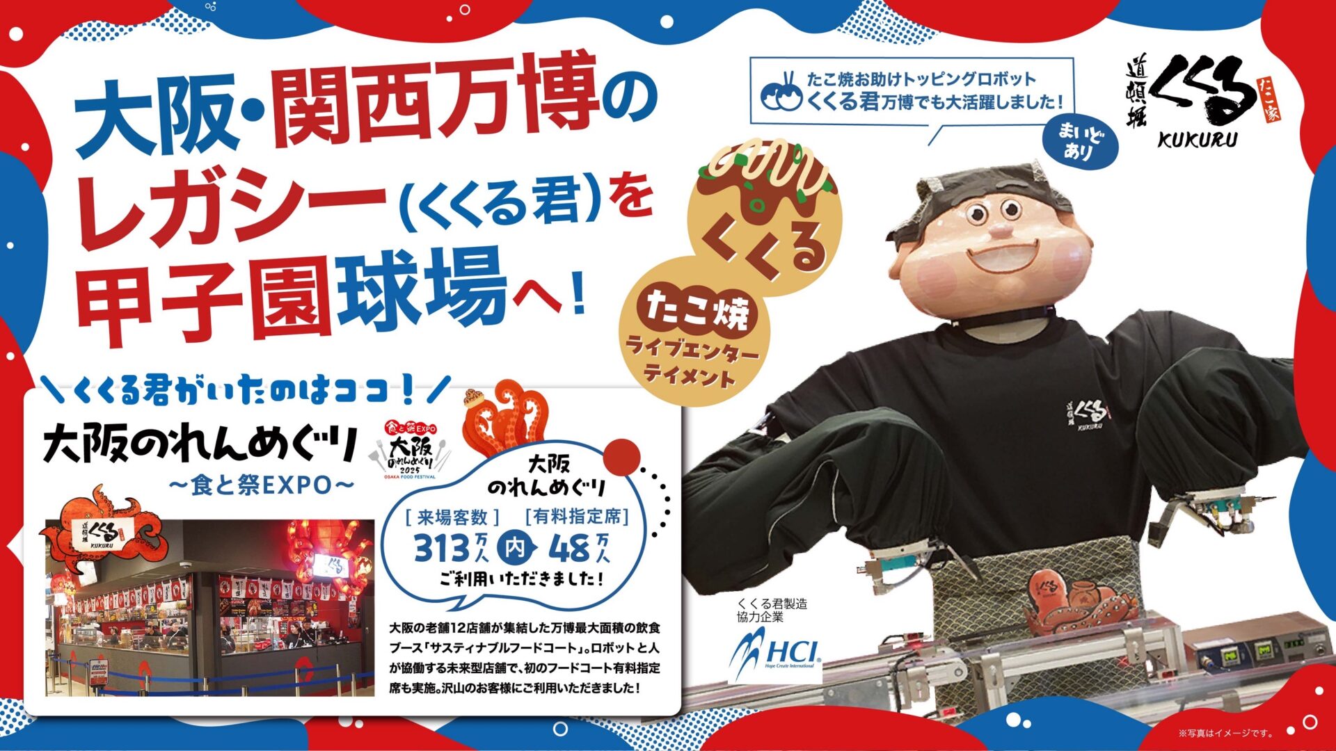 「大阪のれんめぐり~食と祭EXPO~」で大人気となったたこ焼きお助けトッピングロボット『くくる君』が